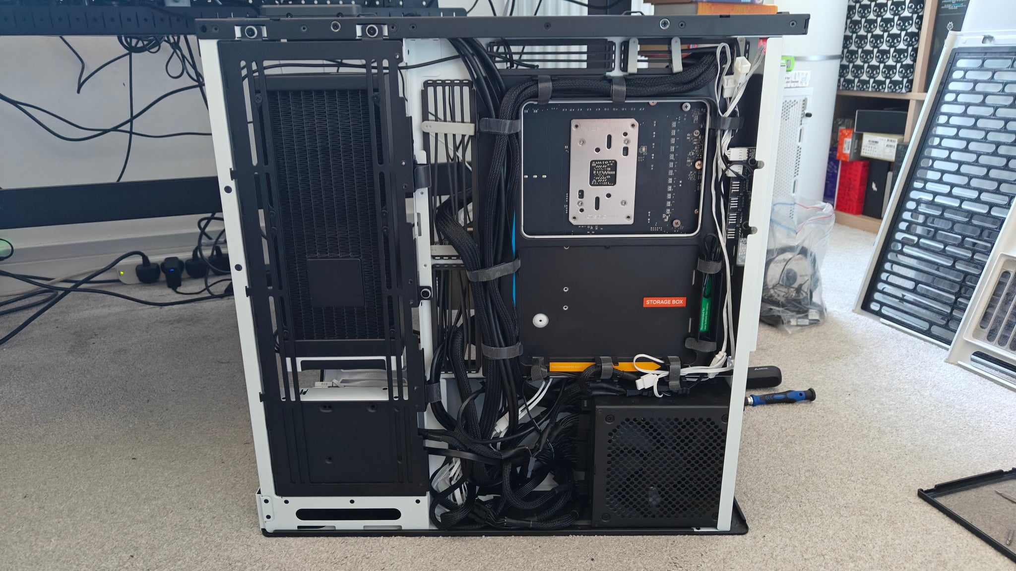 I’m also curious to hear your comments and suggestions – should I turn around one of the rear fans as an exhaust, as I’ve seen elsewhere online? Add side intake fans? Get in touch with a company that will supply a white graphics card and motherboard? Clean up my cable mess? Some of these are possible, so do get in touch via the comments below or via Bluesky.
