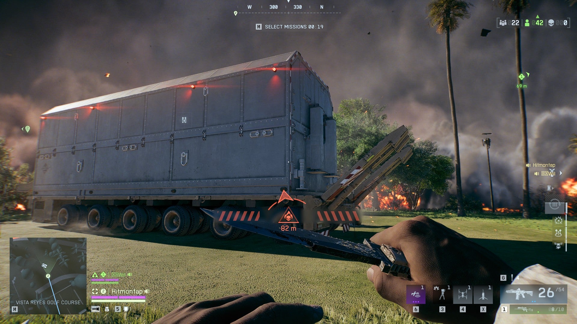 This is all good stuff, so why the faint praise? Well, for one there’s a sense this is all a little too familiar, a bit too close to what we’ve had before. Redsec feels particularly close to Warzone – not helped, in its defence, by the fact Warzone technically pilfered the armoured chest plates idea from Battlefield’s first battle royale, Firestorm. The colour-coded gun rarities, signalling the number and quality of attachments; the air strikes and UAV perks; the obvious modern-military vibe and the shapeless greyness of its map, which stitches together non-sequitur sub areas (a golf course down the road from a missile silo, anyone?). That’s all very Warzone, even if, again, Battlefield and CoD are ultimately two ever-closer sides of the same coin these days. The respawn system, where you can re-drop a squadmate at a designated tower, is right out of Apex Legends. There are nuggets of newness here, and the specific combination is new too of course, but I’m not sure it ever quite feels new as a whole, nor truly, specifically Battlefield as a result.