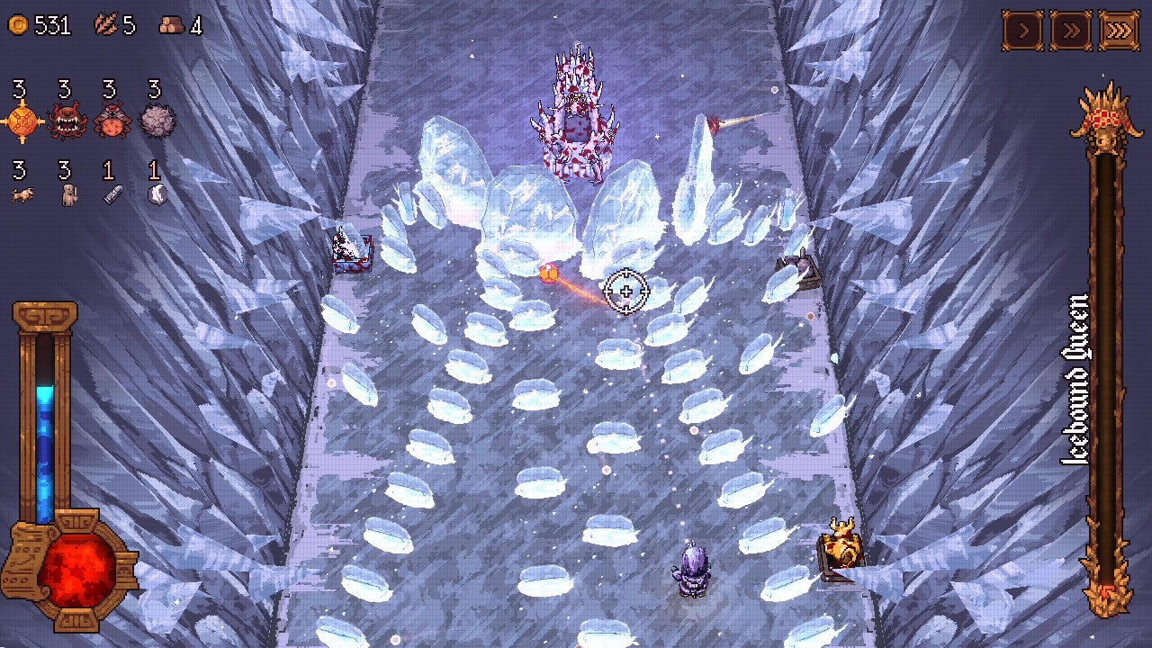 Often these are new types of ball – elemental balls, say, or vampire balls that leach health from enemies they defeat, or balls that send either horizontal or vertical laser beams when they strike; they’re a good bunch however they work. Sometimes they are perks or other ideas. One of my favourite perks, for example, means that all enemies you defeat will explode, damaging enemies on either side of them. Another adds critical damage if your attacks hit them from a certain side. Another adds a little stone fellow who rumbles up the track towards your foes every so often doing a little damage. Another is a turret. You get the idea.