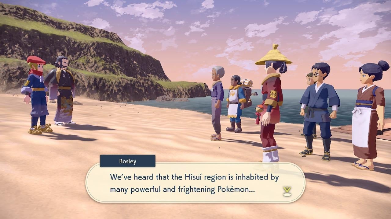 The Pokémon Legends treatment is not utterly blind to historical happenstance, of course. Ainu are very seldom depicted in games – their recent appearance in Ghost of Yōtei, Sucker Punch’s Hokkaidō-set action game, being a rare exception – and here in Legends: Arceus they’re portrayed as powerful stewards of nature. The Diamond and Pearl clan’s leaders are all elite Pokémon trainers, and wardens of Husui’s boss-battle ‘noble Pokémon’. Sure, there are a few tired noble savage tropes, which anthropologists like me sometimes grumble about, but it does put Ainu culture and tradition in the spotlight, and gives a generally positive, sympathetic portrayal.