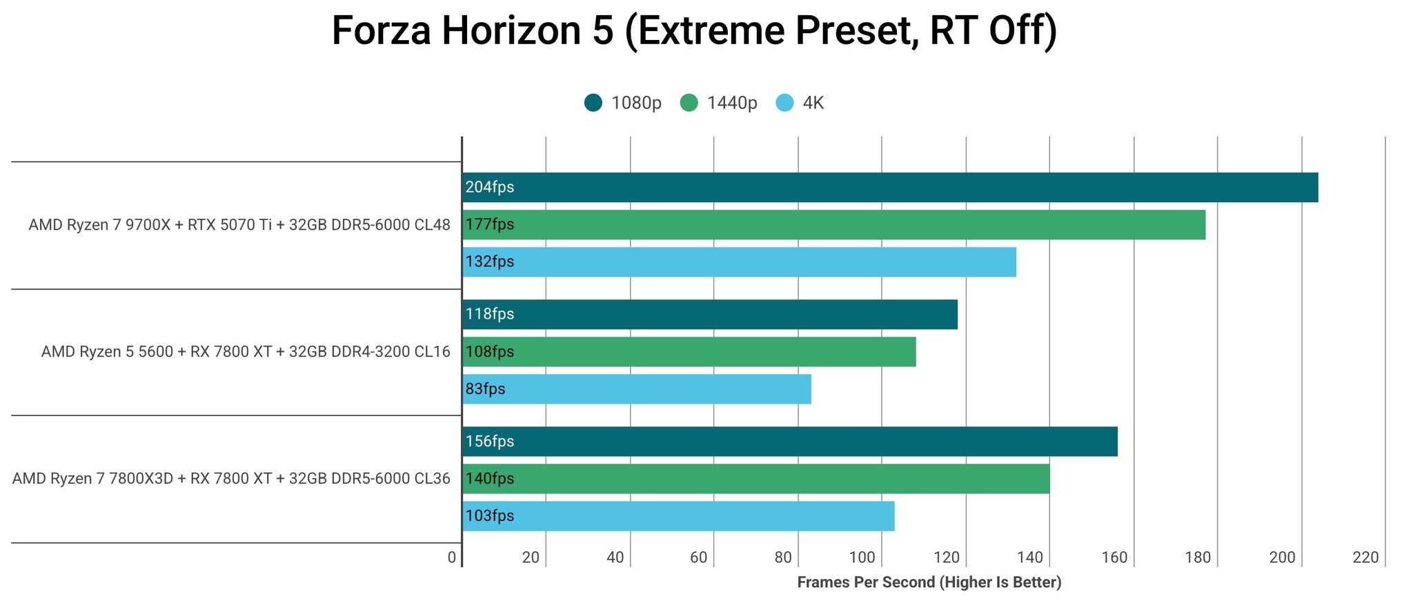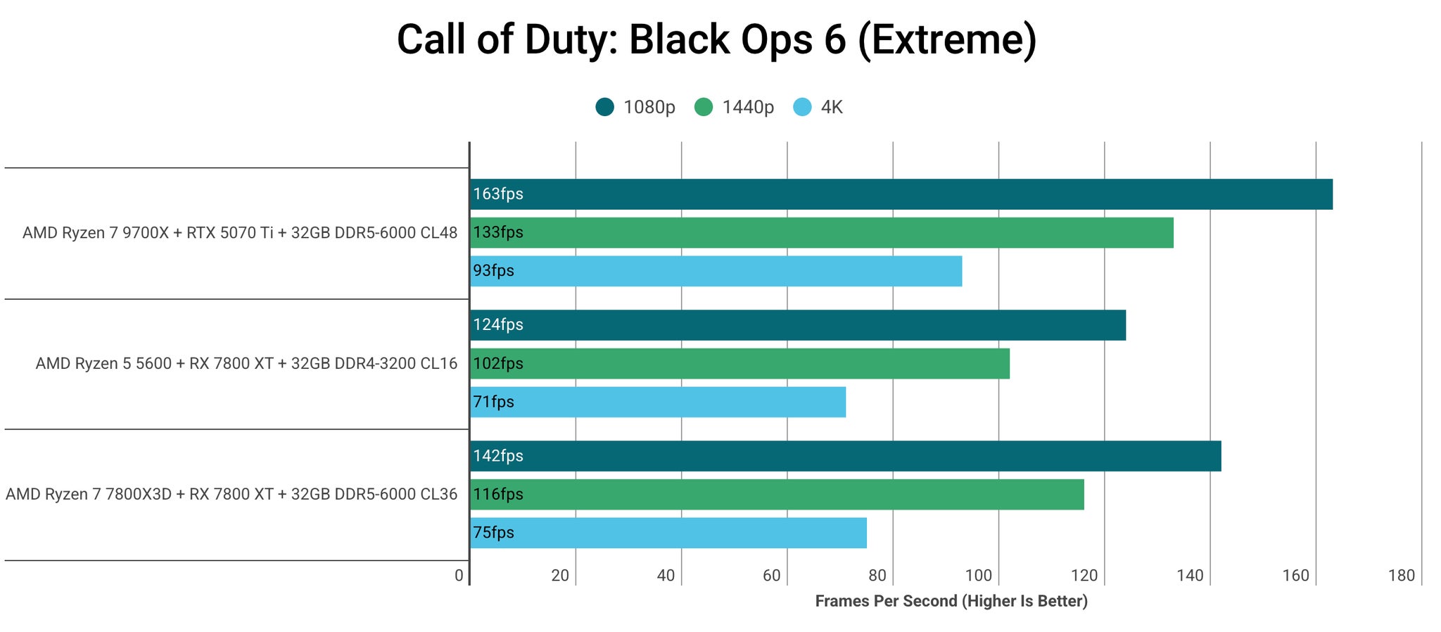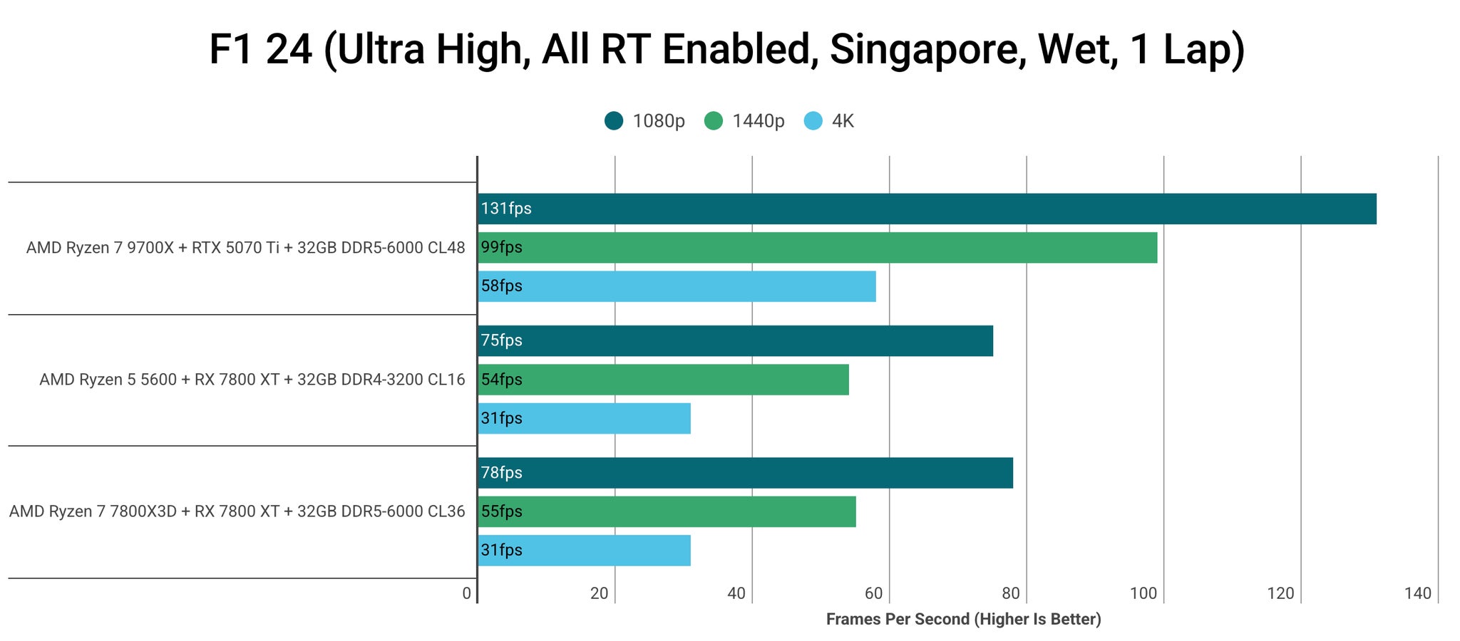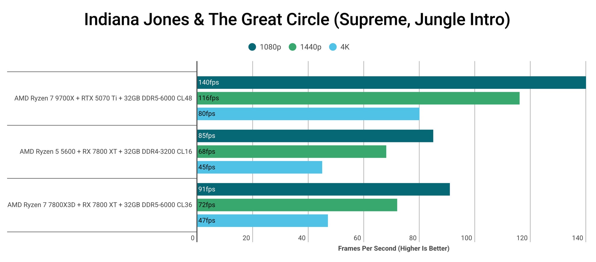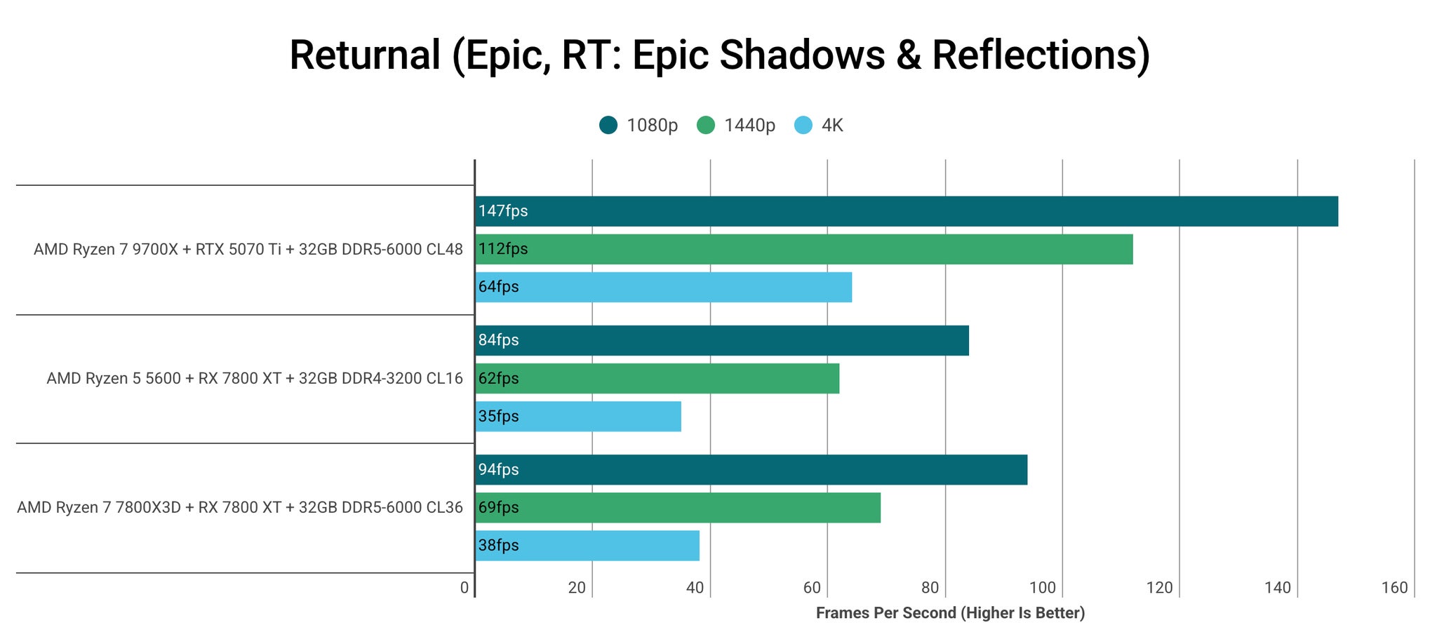To provide some extra context, we also have the returning results from the 5600 and 7800X3D systems with an RX 7800 XT, as games were run at the same settings.