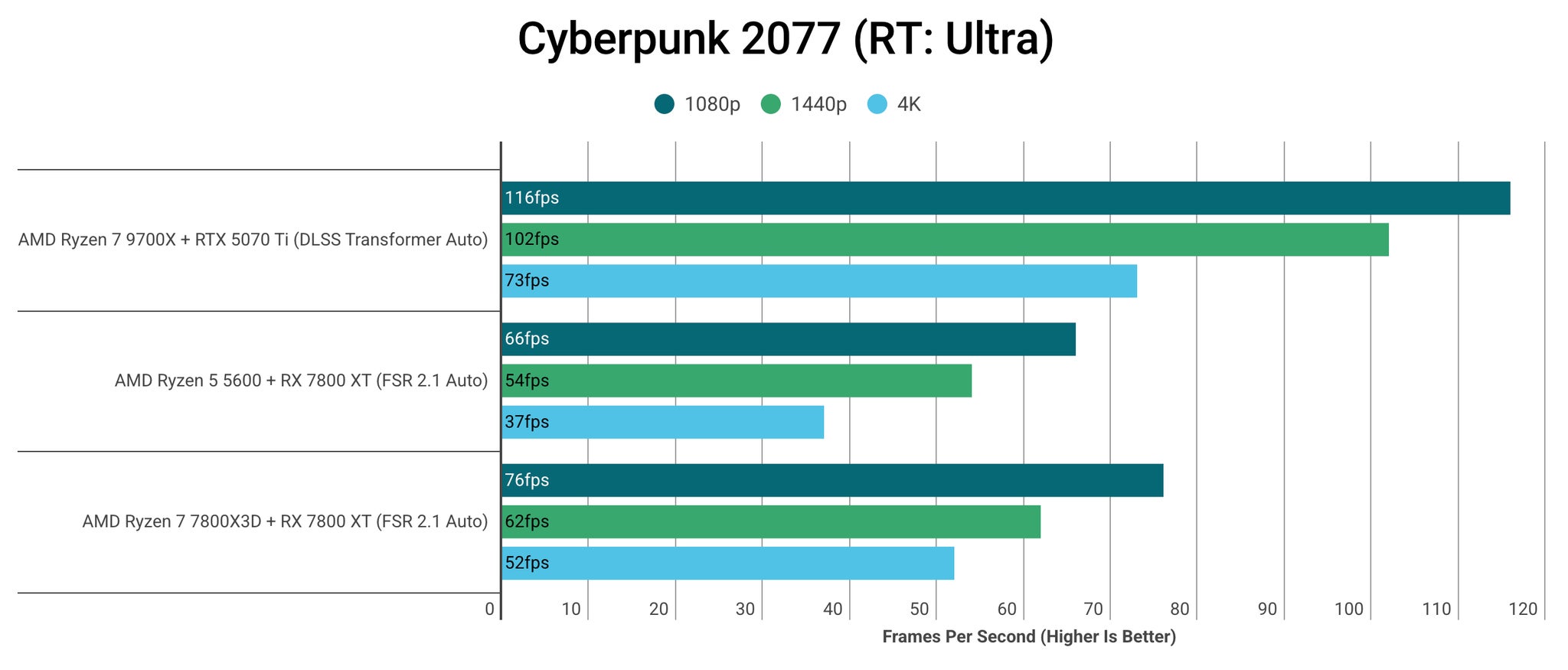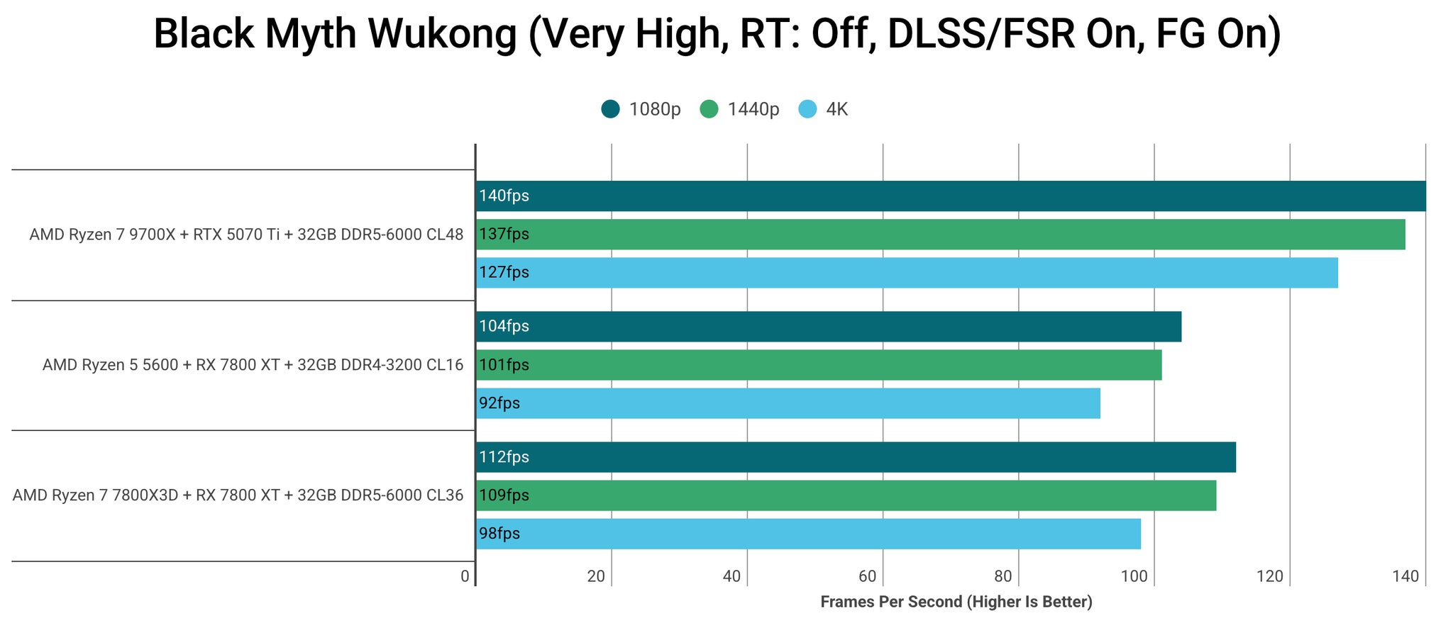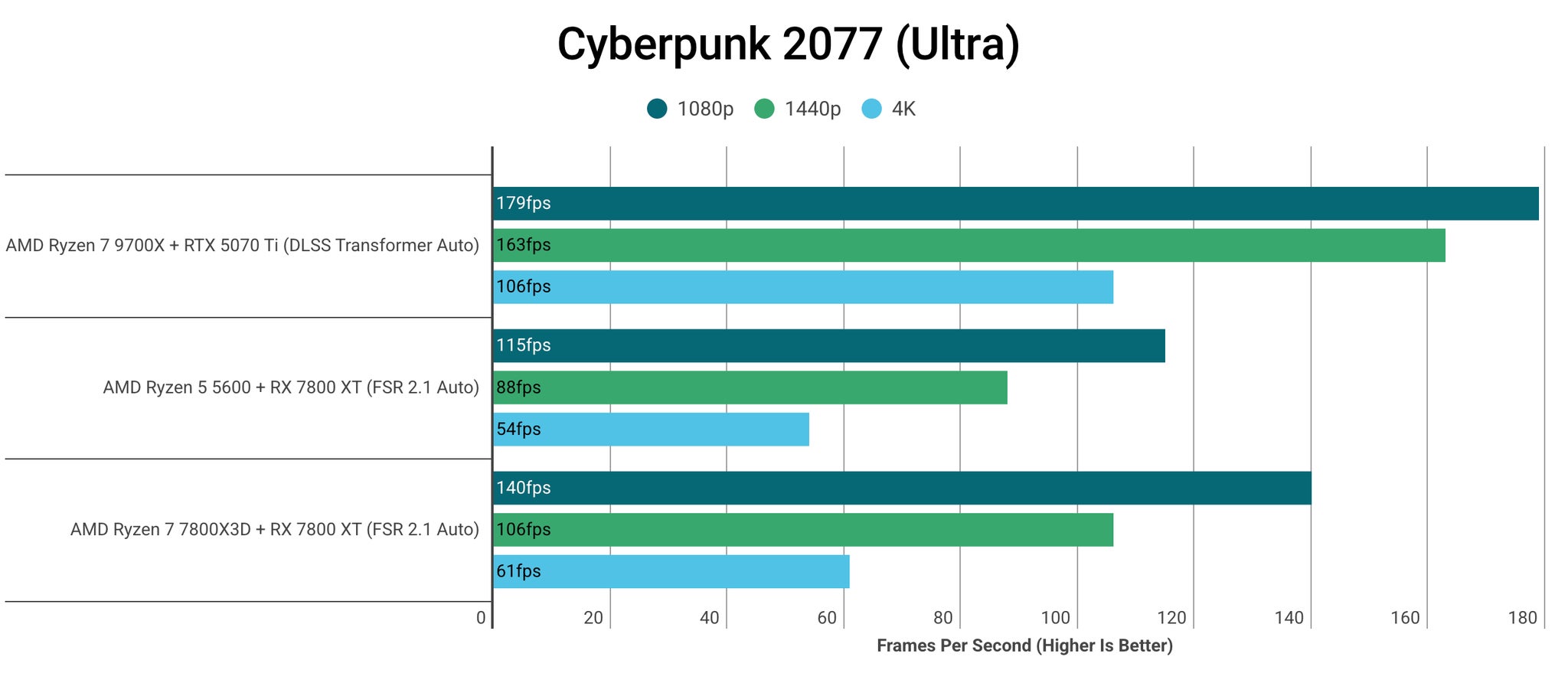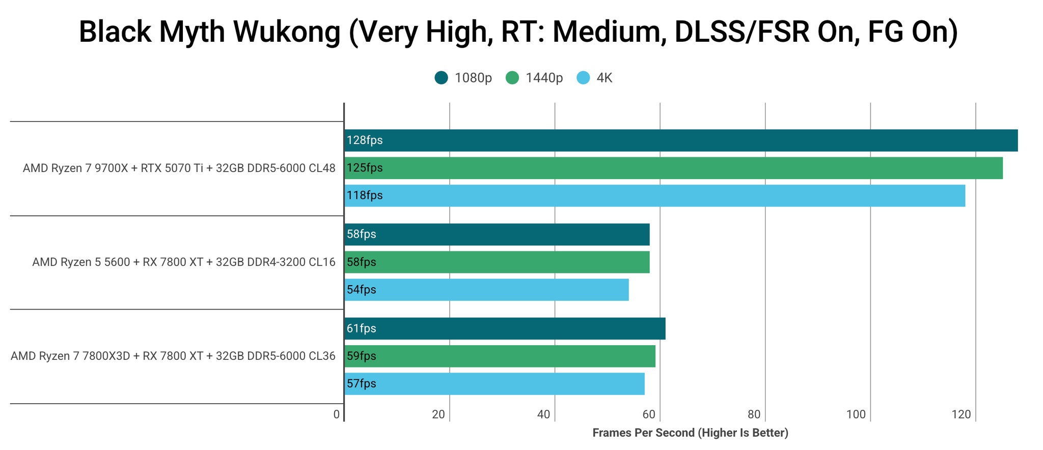 Generally, I think this Wired2Fire system is suited extremely well for 1440p and 4K AAA gaming thanks to that combo of the 5070 Ti, as Rich also noted in our 5070 Ti review. The mid-range Ryzen 7 9700X also provides ample power for these games, while being more efficient than its predecessor and providing a solid uptick in both gaming and content creation performance – as Will highlighted in our 9700X review.