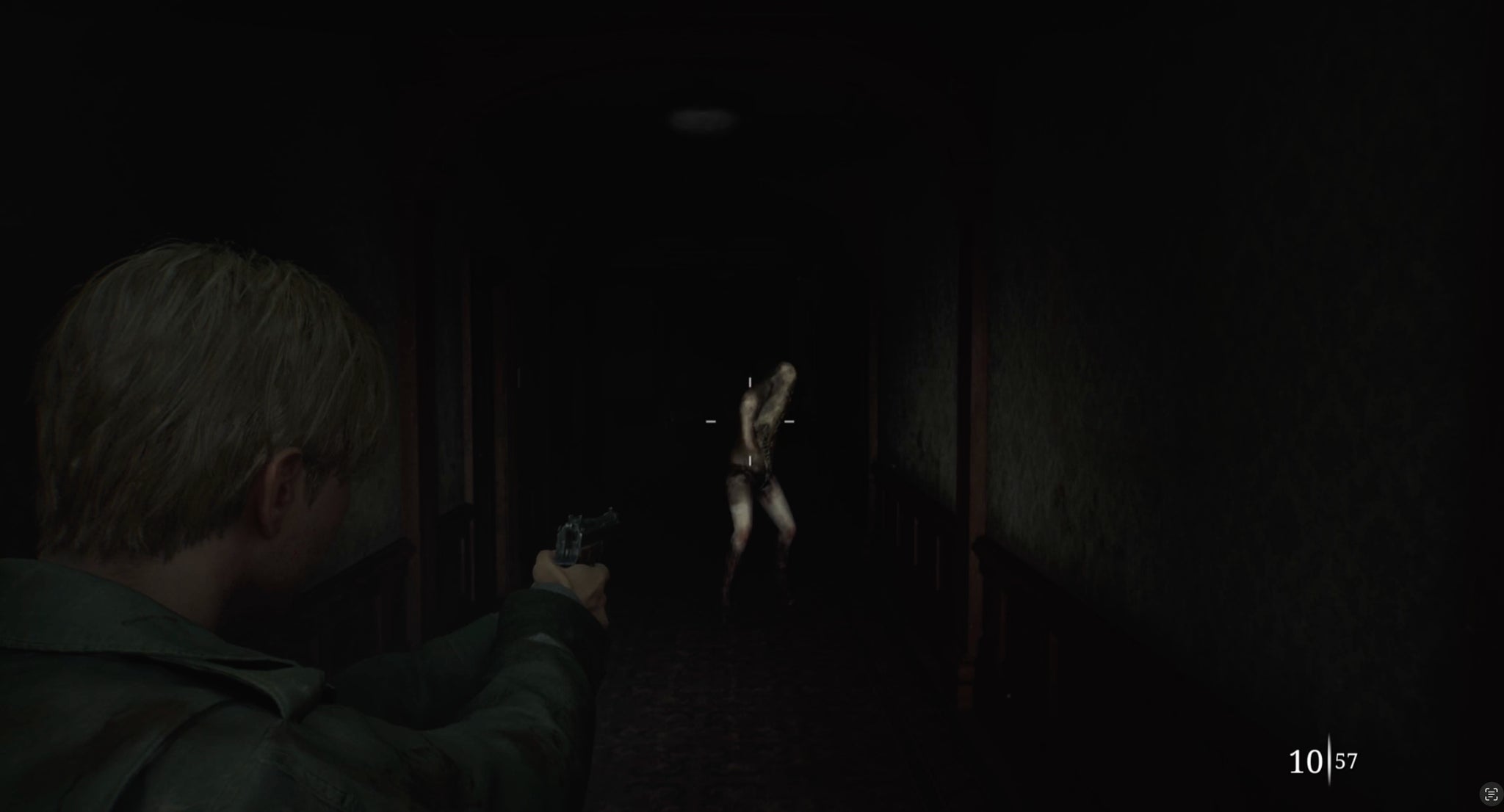 Sunderland doesn’t comment on this, though. He doesn’t comment on anything. Barely pausing for breath, he doesn’t marvel that he’s throwing himself down hole after hole after hole, yet somehow remains on the same floor. He doesn’t comment on the shapes that writhe just out of sight, or how the world around him keeps rippling and changing. To coin a phrase (if you know, you know), all he seems to care about is that dead wife of his.