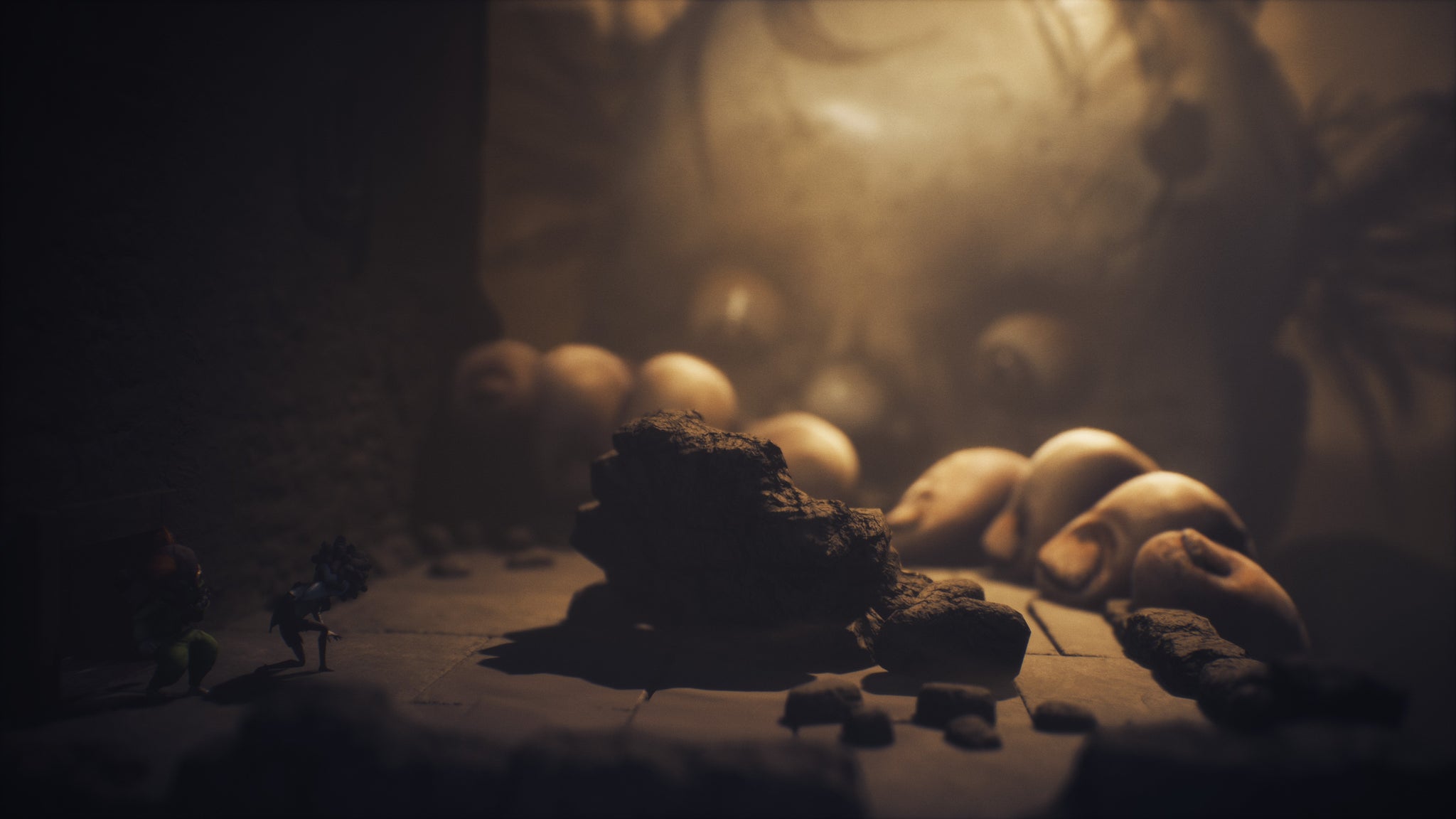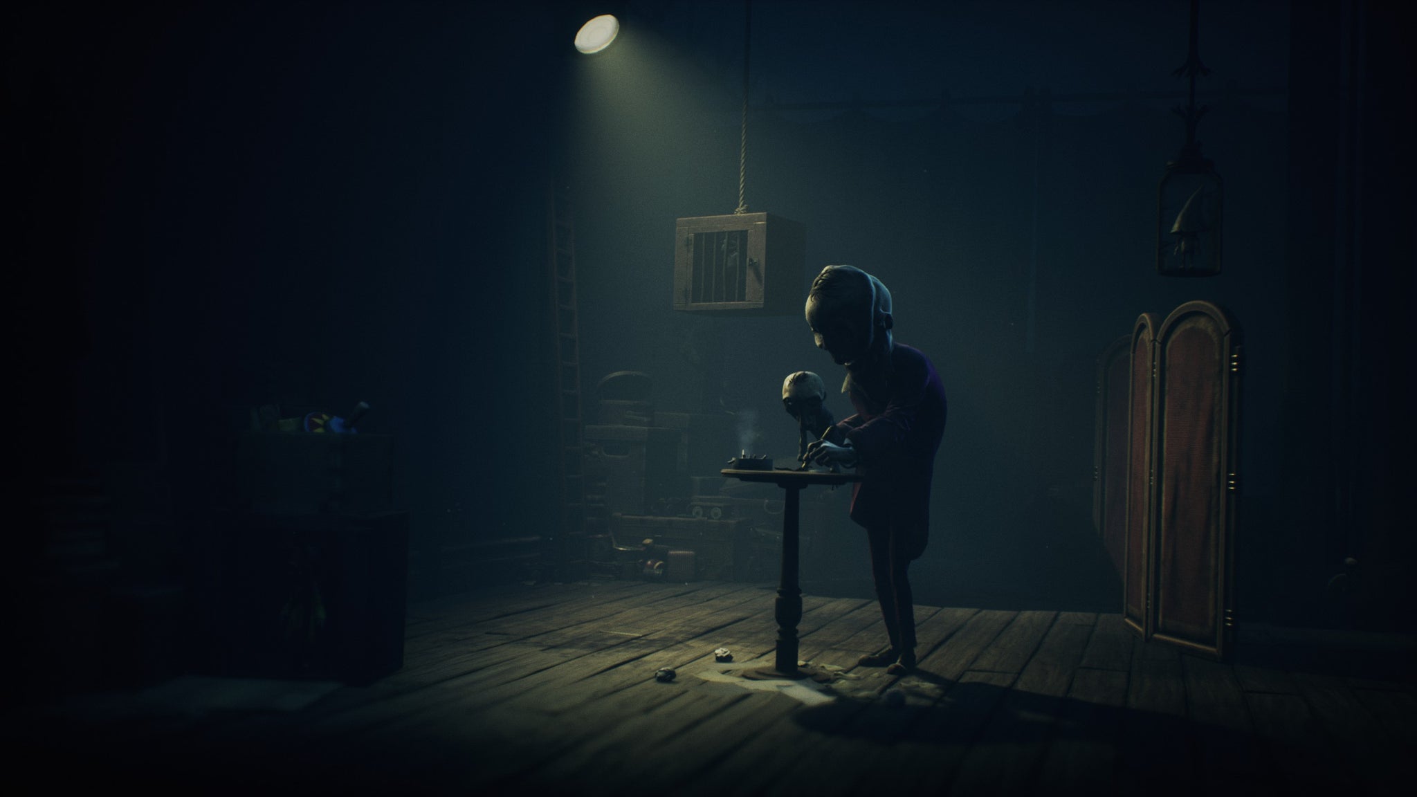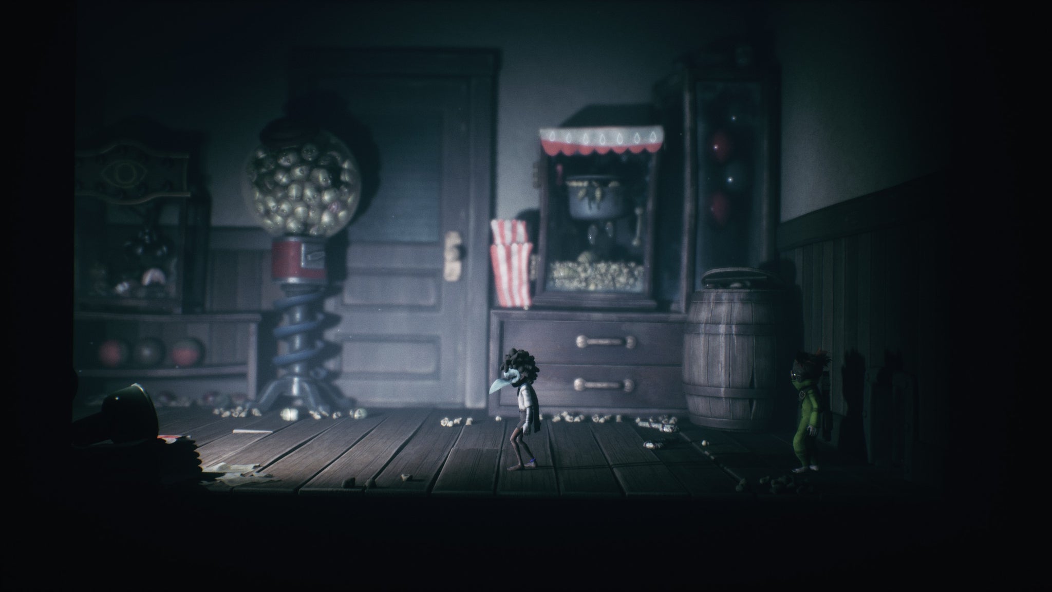 Eventually, around the time those big top tents and glimmering Ferris wheel lights come into view, Little Nightmares 3 blossoms into a series of imaginative, confidently choreographed sequences that – while never quite escaping those fundamental frustrations – help carry it through to a satisfying conclusion. Its final two chapters are especially vividly realised, exhibiting an energy and ambition less evident elsewhere. Perspective is used increasingly playfully, the cinematic camera frequently eschewing its traditional left-right march to lend the world a more tangible form – particularly as it delves in and out the final chapter’s warren of interconnected hallways and rooms. It’s here Little Nightmares 3 also finds a gimmick it can work with, making for a clever series of final puzzles that – along with some impressively staged set-pieces and a brilliant bit of monster design – end things on a high.