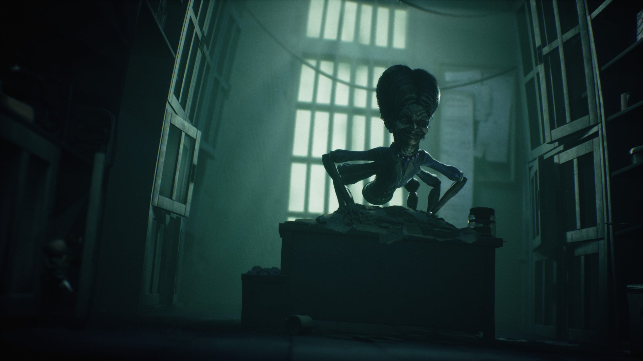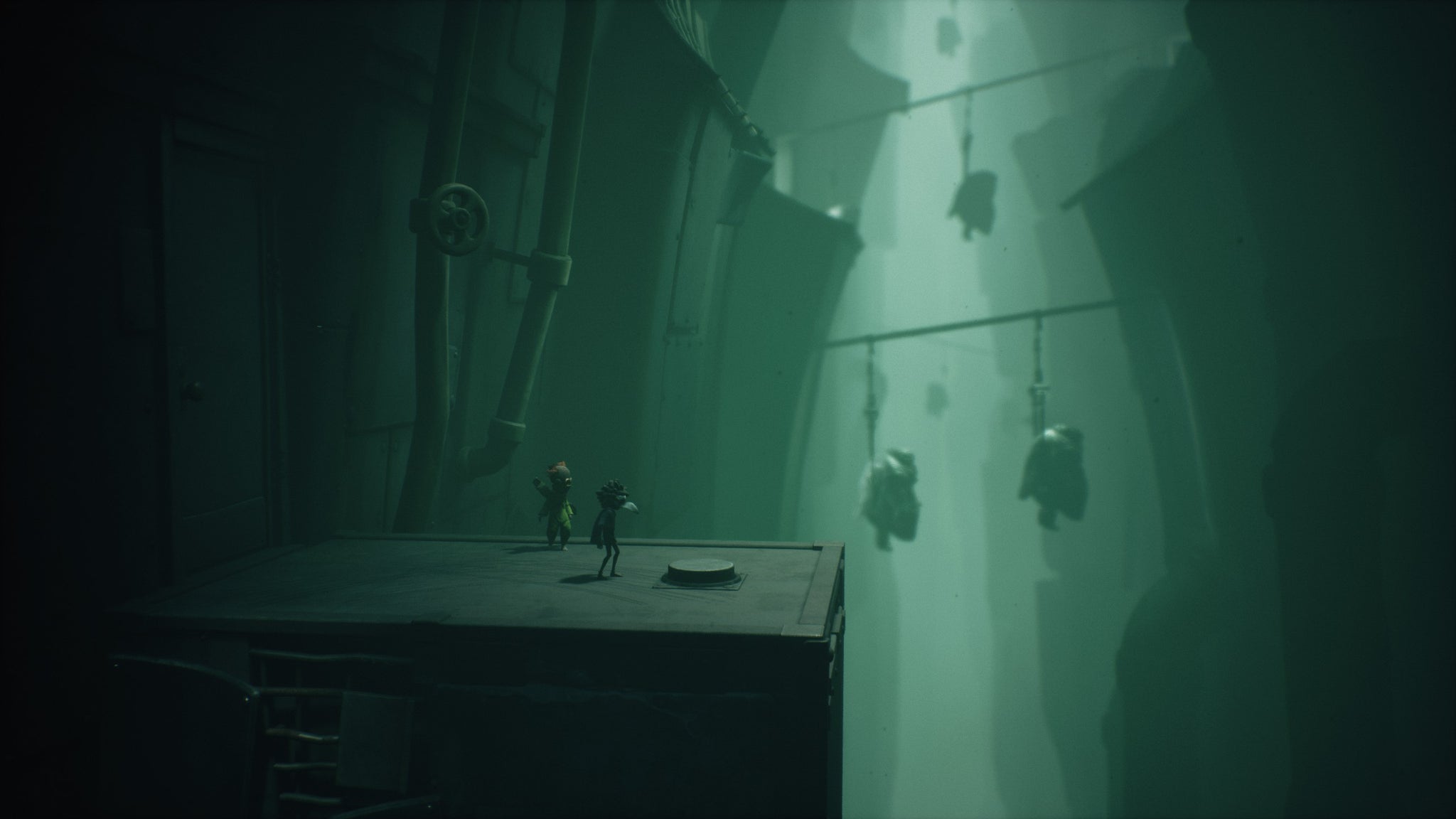 It’s just one of several areas where it feels like Little Nightmares 3 doesn’t quite hit the mark, even as Supermassive works to a familiar template. Progress still involves a blend of 2.5D platforming, puzzling, stealth, and frantic escape as each world’s primary antagonist makes themselves known. But in terms of moment-by-moment action it often feels a little flat. There’s a lot of walking through empty, nondescript rooms, especially in the game’s rather rote first half, and when the set-pieces do come into play, they’re too often predictable and pedestrian in design. You’ll stealth across the foreground to avoid sightlines, you’ll leap and slide as monsters suddenly give chase, but rarely do these sequences capture the imaginative choreography, the shivering menace and oppressive tension, of earlier games. Puzzles are particularly disappointing, distilling the series’ formula down to perfunctory busywork – block pushing, lever cranking – rather than anything more involved.